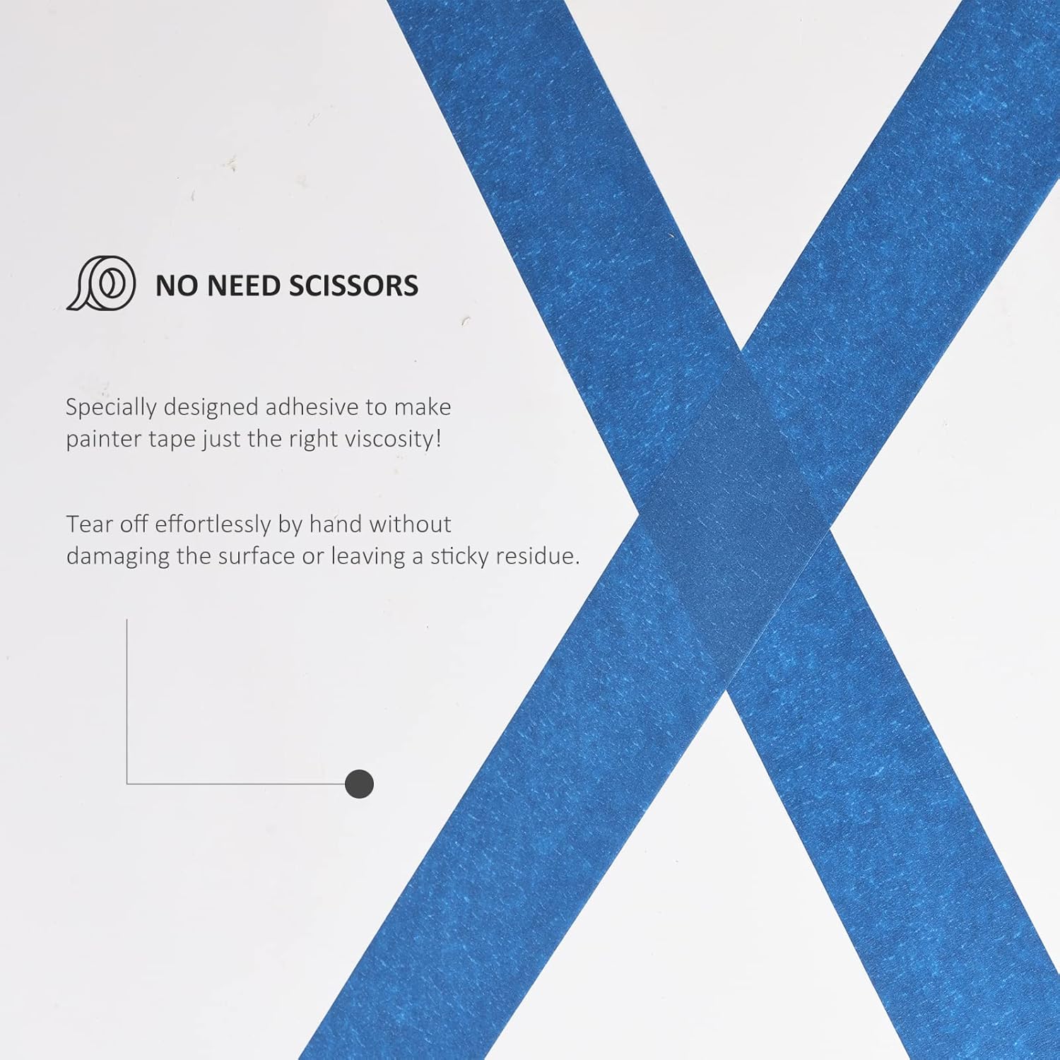 - No need scissors: Specially designed adhesive to make painters tape just the right viscosity! Tear off effortlessly by hand without damaging the surface or leaving a sticky residue. Please note that the color of this product is dark blue, and normal pen handwriting is not so clear. We recommend that you use marker pens if need to mark something