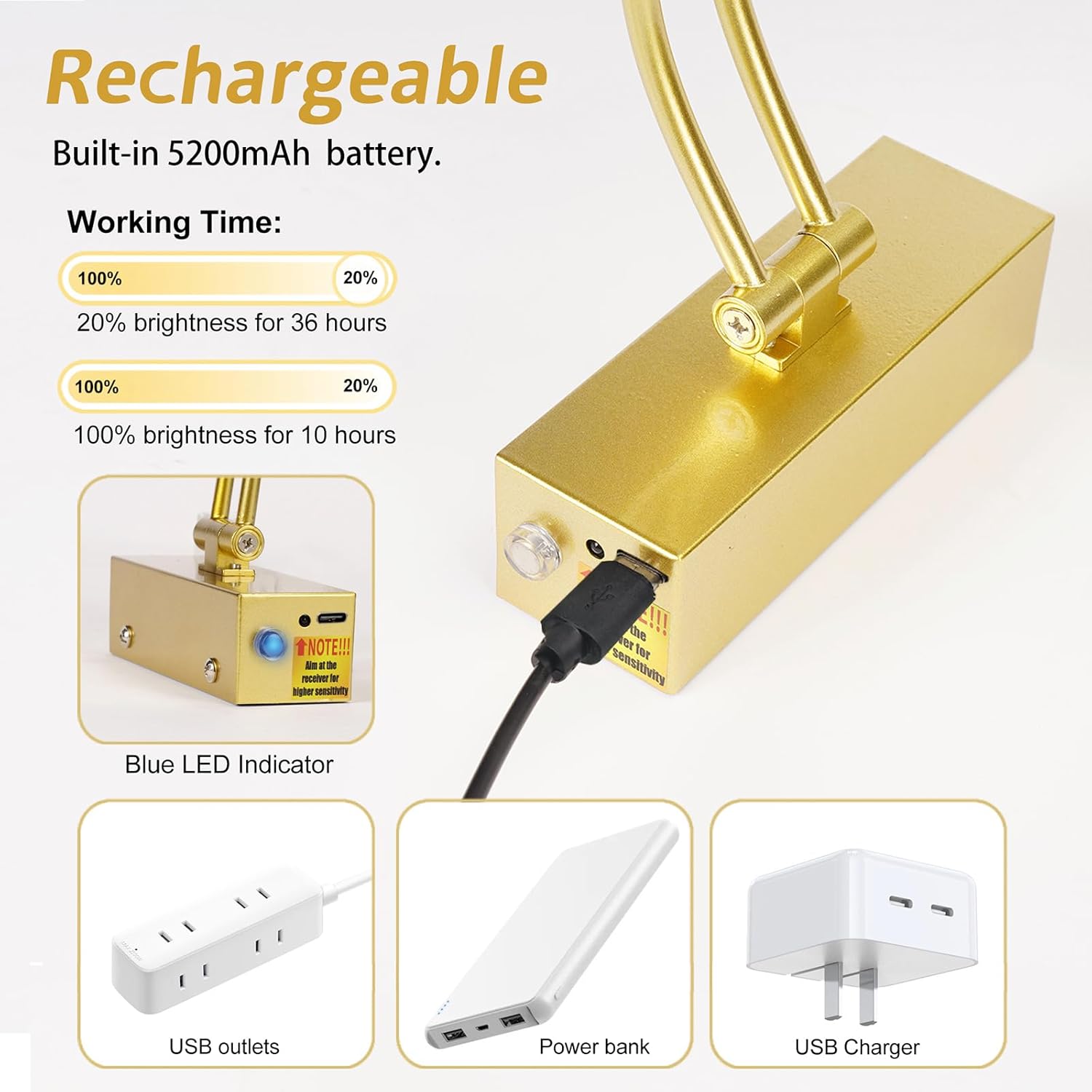 - Long Lasting Battery - The 5200mAh rechargeable battery included provides a long-lasting and reliable power source. The 16inch cordless art light is capable of using 100%-20% brightness for 10-36 hours when fully charged. Includes a 40in USB cable. With a working power of 3W , it generates almost no heat, ensuring that your artwork stays protected.