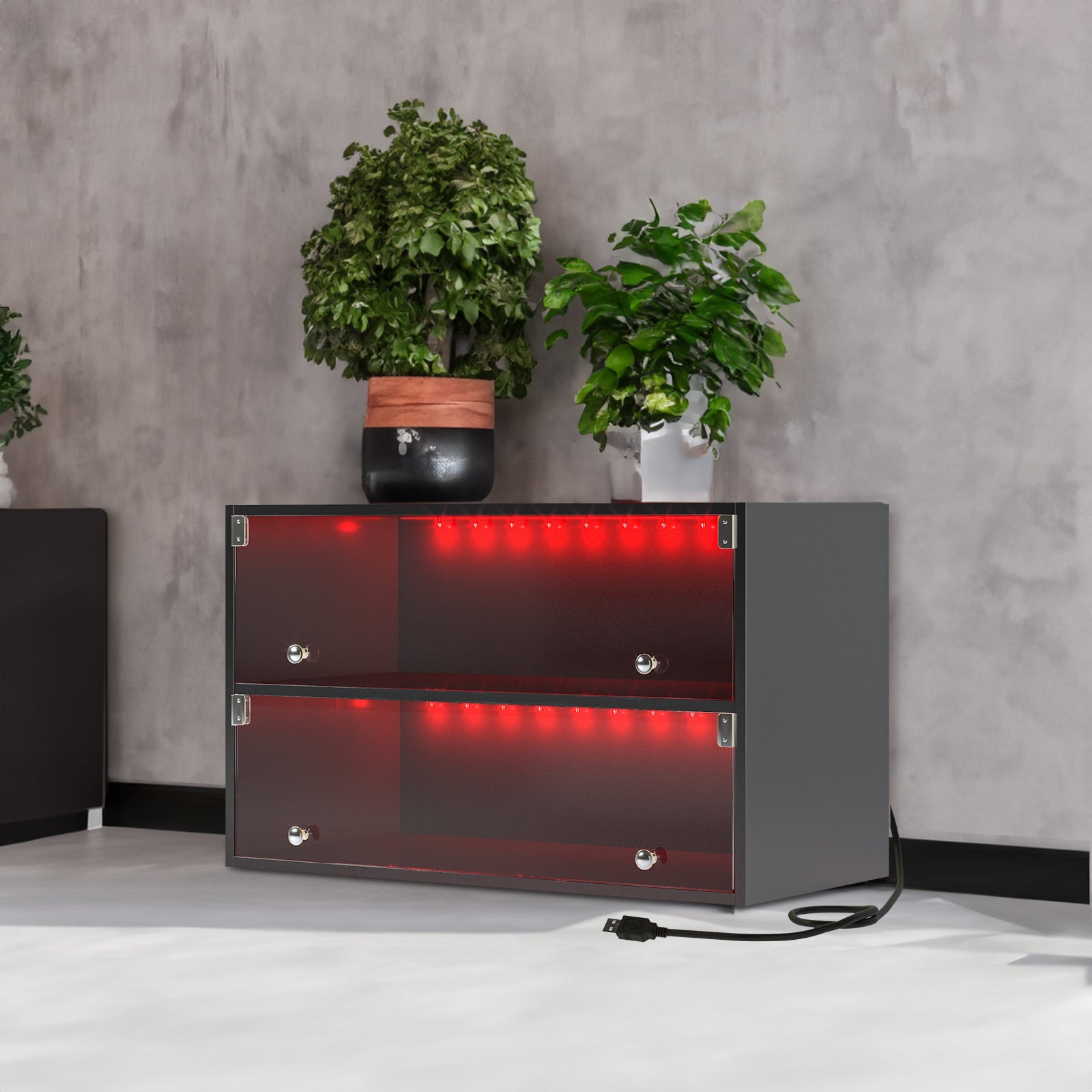 Black Glass Door Shoe Box Shoe Storage Cabinet For Sneakers With RGB Led Light