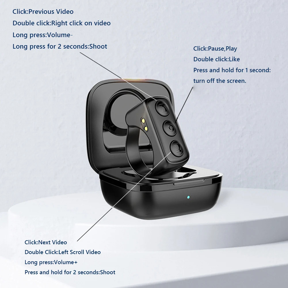 Take hands-free control to the next level with this multifunction Bluetooth remote control ring. Whether you're flipping through e-books on your Kindle, scrolling TikTok while relaxing, or snapping remote selfies, this compact ring has you covered. Designed for iOS and Android, it supports page turning, video control, volume adjustment, camera shutter, and more—all from your fingertip. Ideal for cozy reading, content creators, and everyday convenience, it includes a rechargeable charging case for up to 5 full charges.