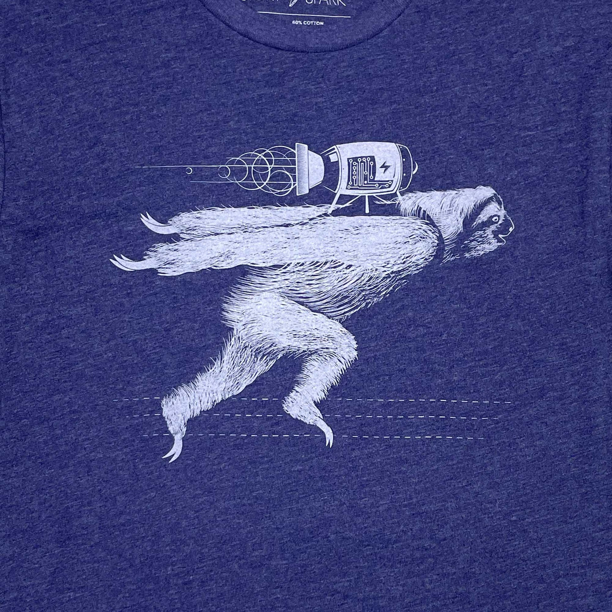 At STORY SPARK, we take great pride in creating unique illustrations on soft, lightweight graphic tees that allow you to tell a story and spark connections wherever you go. Make this rocket sloth tee part of your story, and see what conversations you can inspire.