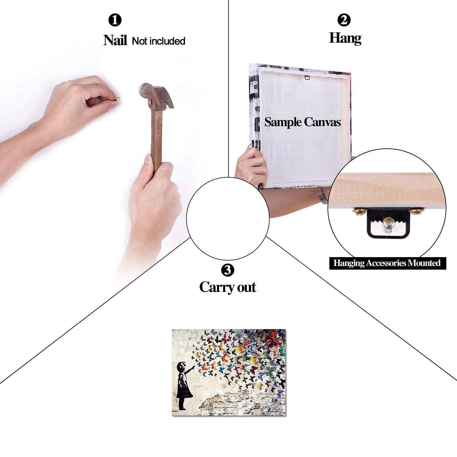 Colorful Graffiti Street Canvas Wall Art Funny Butterfly Banksy Street Art Mural Pop Art Modern Home Office Wall Decor Framed Canvas Wall Art Decor for Study Room Walls Easy to Hang - 28x44inch