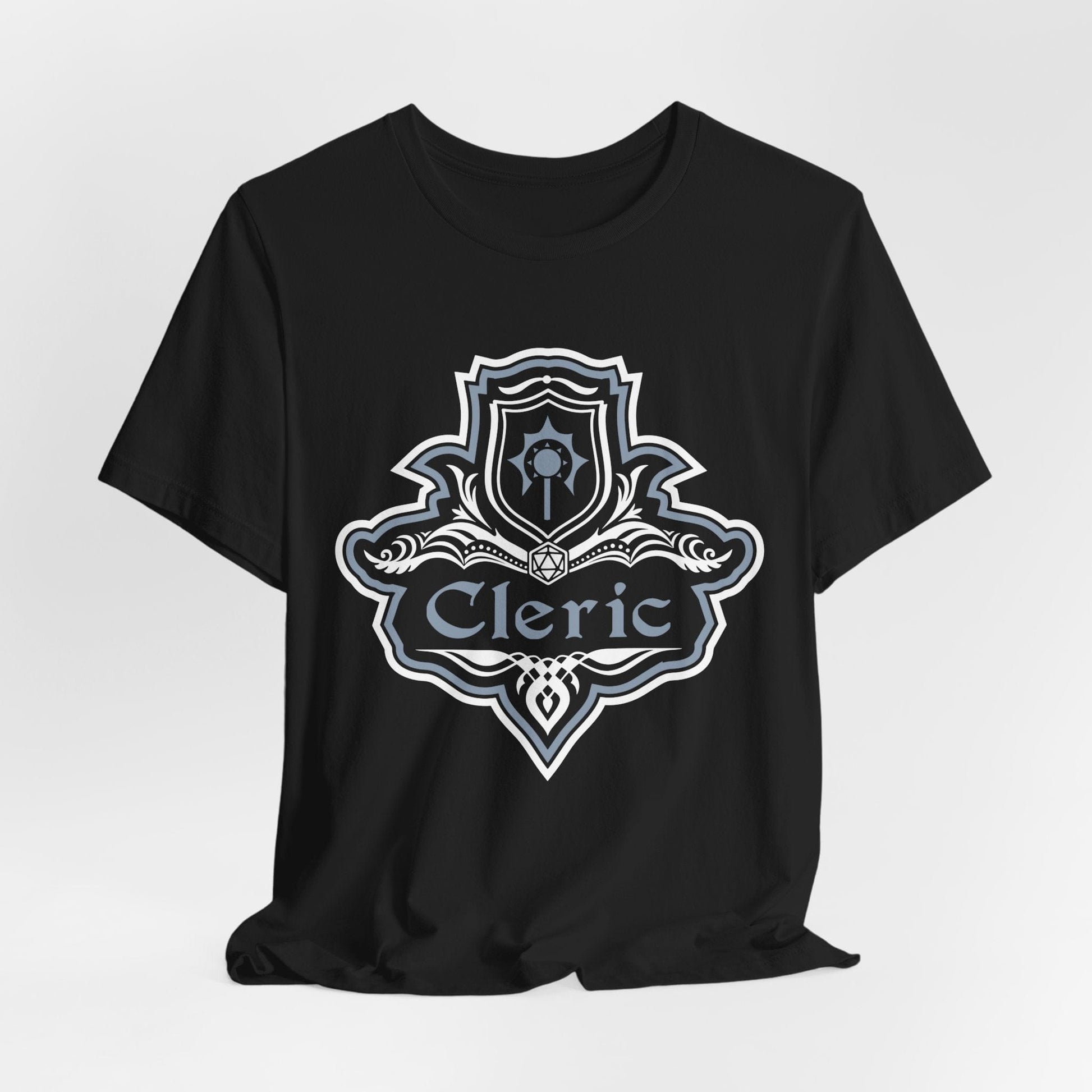 Choose your holy path with this fancy D&D Cleric Class Emblem T-Shirt! Show off your divine fashion sense with this must-have for any holy warrior. Perfect for both adventuring and everyday wear.
