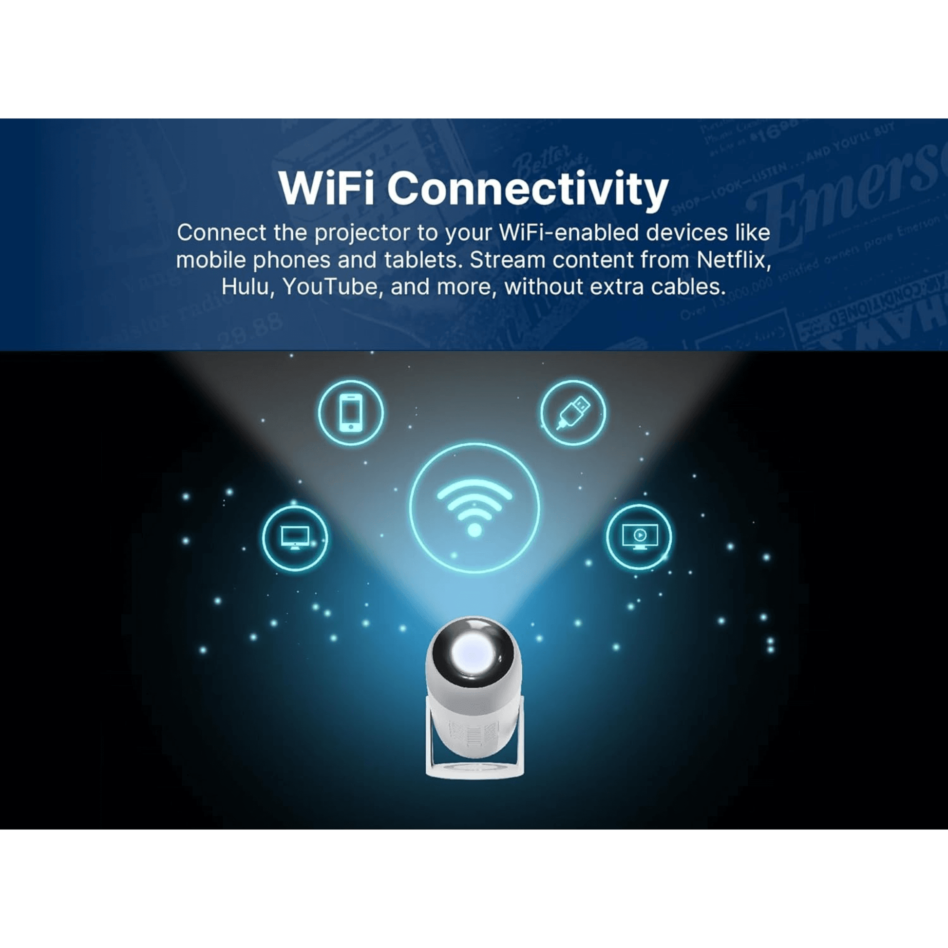 Elevate your entertainment with this high-performance Emerson 150" LCD Projector Combo, delivering stunning 1080p HD visuals on screens up to 150 inches. With 200 ANSI Lumens brightness and a long-lasting LED bulb rated for up to 30,000 hours, it ensures vibrant and reliable performance for years to come. Enjoy versatile connectivity with HDMI, USB, and 3.5mm headphone input, making it easy to connect your favorite devices or enjoy private listening. With Bluetooth and Wi-Fi connectivity, you can enjoy streaming endless content. Dual 3W built-in speakers for a total of 6W provide powerful sound, while the compact design and remote control make it perfect for any home theater setup. Includes a travel bag for easy portability and a 100'' foldable projection screen for a complete cinematic experience anywhere.