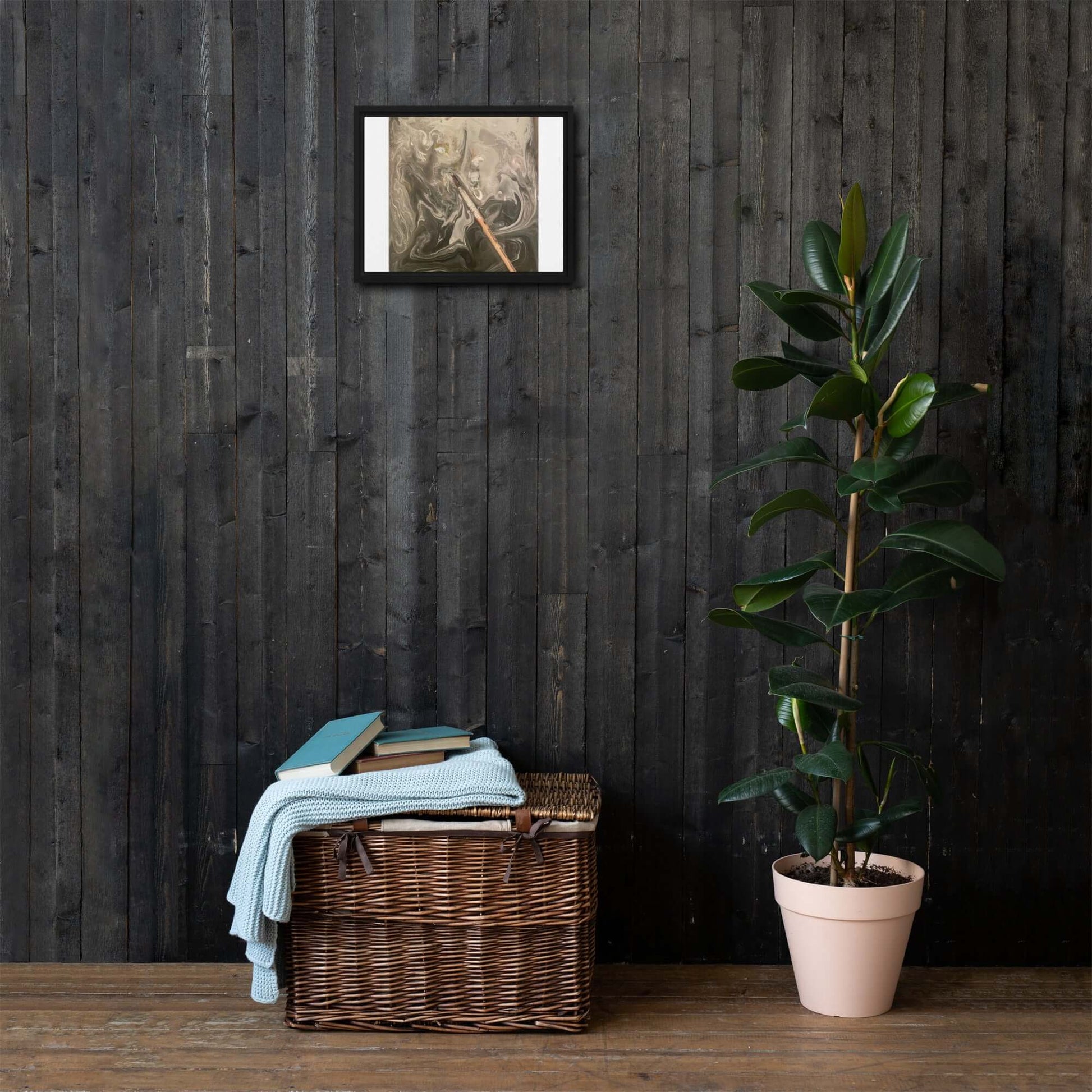 - The framed canvases with brown and black frames have a black inside around the canvas, and the canvases with white frames have a white inside around the canvas.