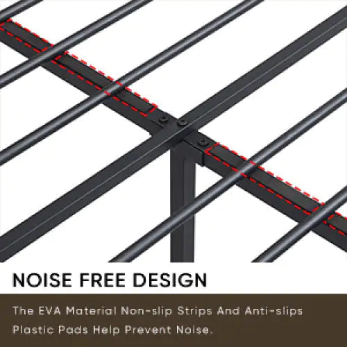 The bed comes equipped with built-in LED lights and a charging station, ensuring your devices are fully charged and within reach. Enjoy a peaceful night's sleep thanks to the metal platform's strong slat support system that eliminates the need for a box spring and minimizes noise.