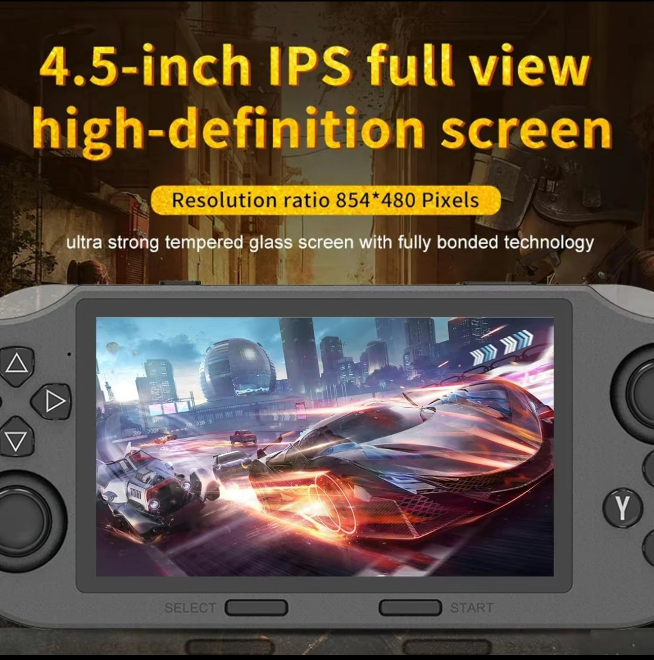 Enjoy crisp visuals with the 4.5-inch IPS screen at 854 x 480 resolution. This high-quality display brings vibrant colors and sharp details to every game, making it perfect for retro classics and modern titles alike. -
