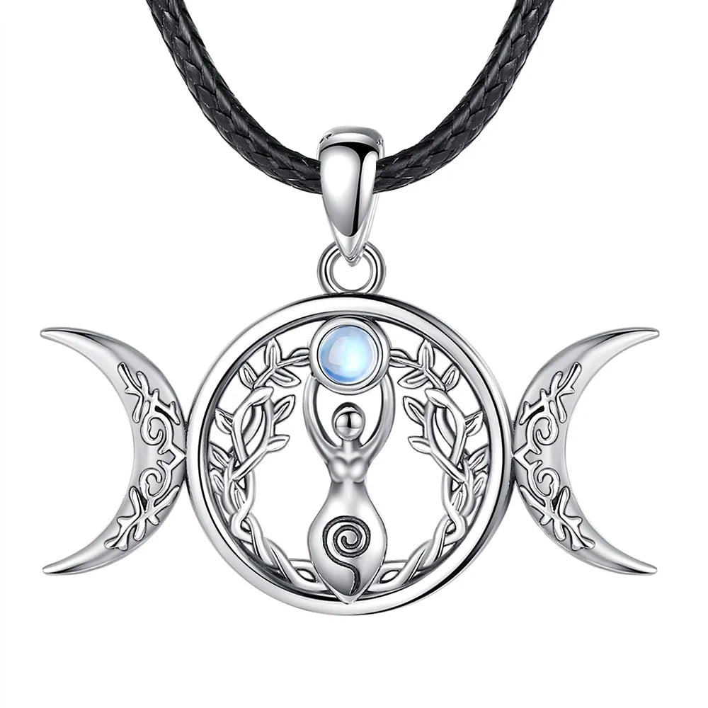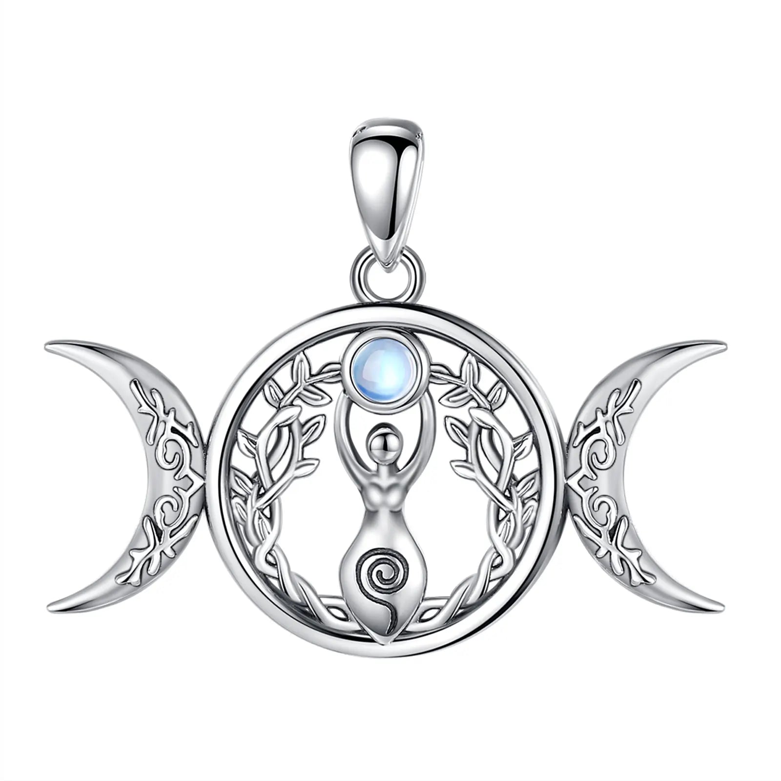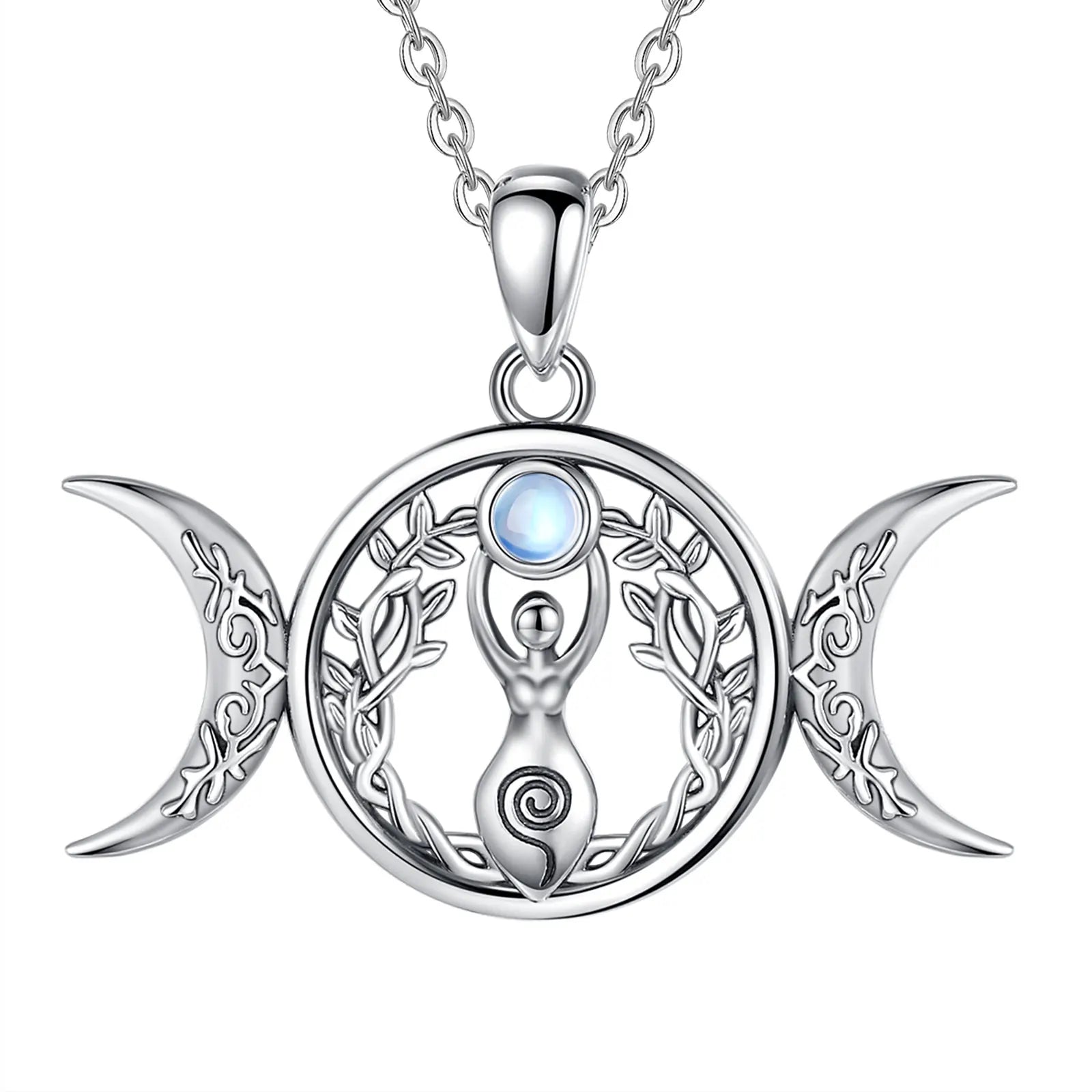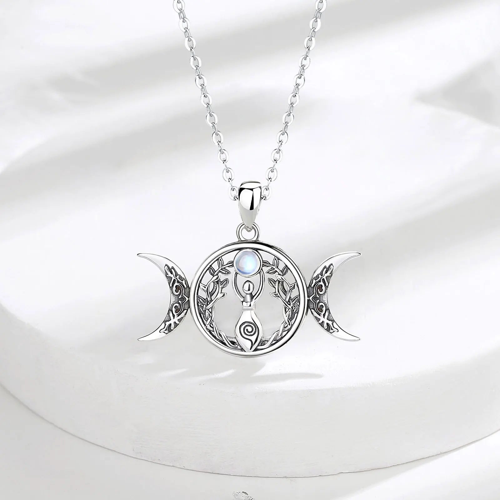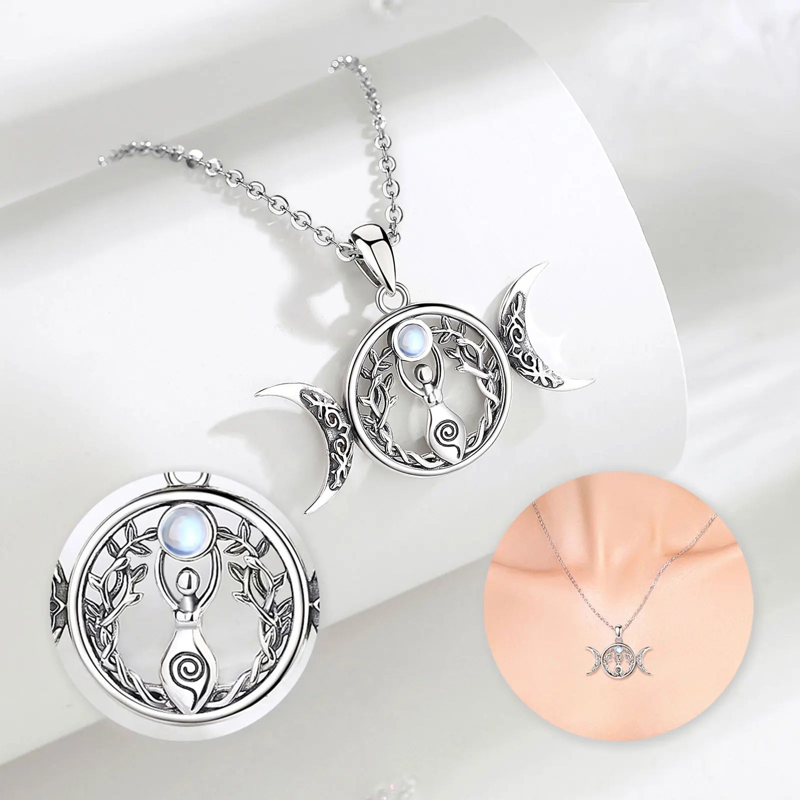 925 Sterling Silver Triple Moon Goddess Necklace for Women Man Moonstone Tree of Life Amulet Pendant Witch Jewelry Gift