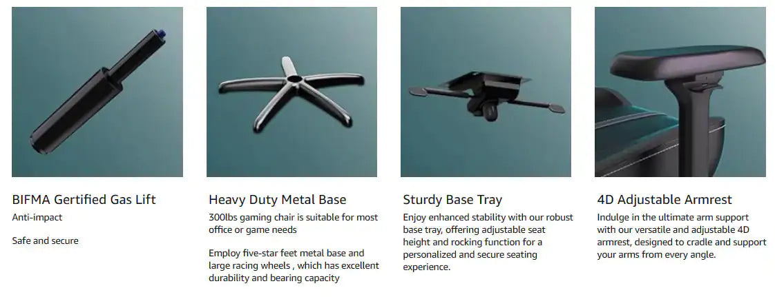 • Dynamic Lumbar Support: Automatically adjusts to your body's curves and posture