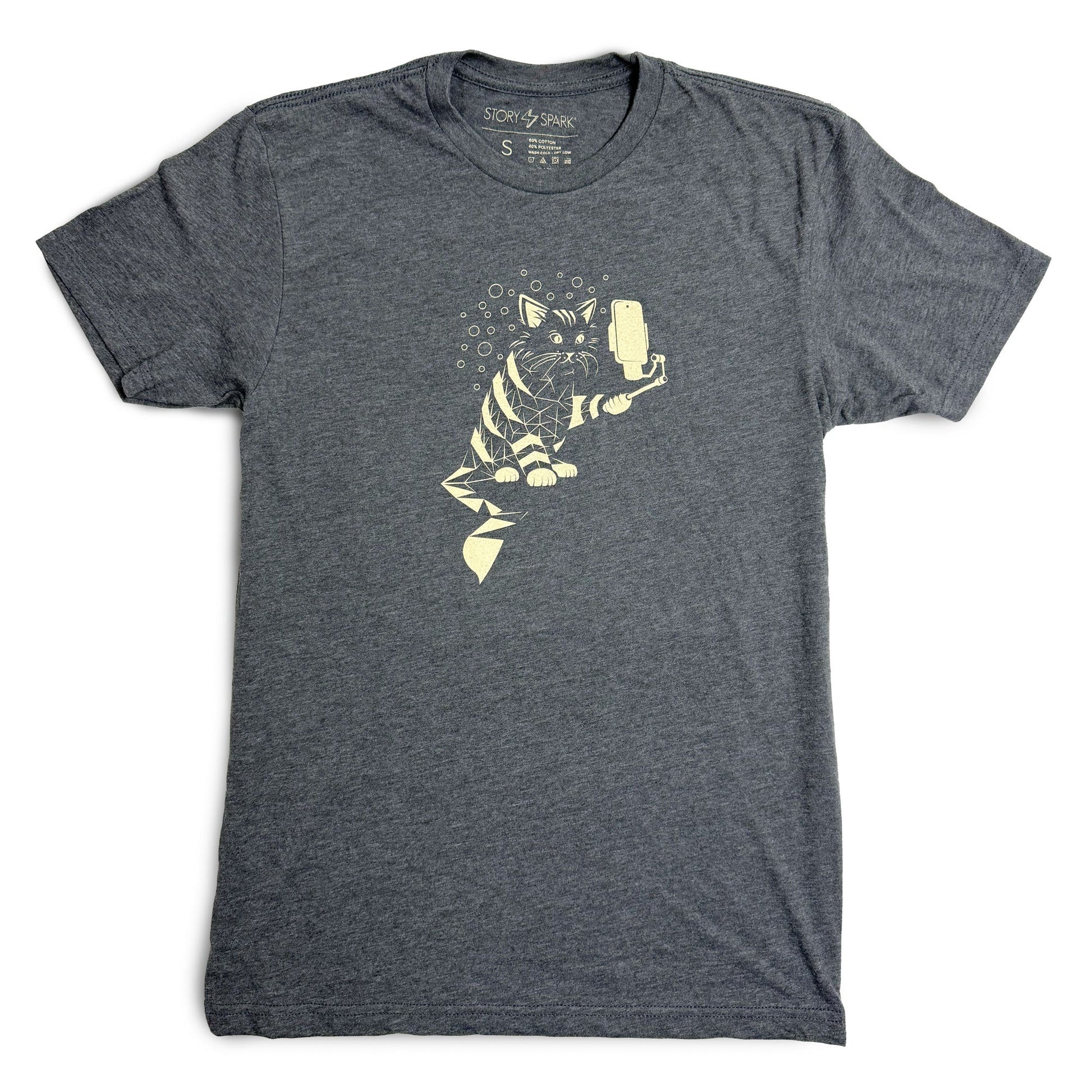 At STORY SPARK, we take great pride in creating unique illustrations on soft, lightweight graphic tees that allow you to tell a story and spark connections wherever you go. Make this selfie stick cat tee part of your story, and see what conversations you can inspire.