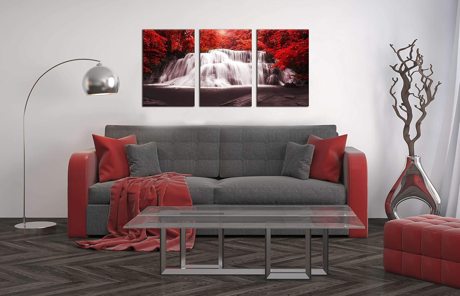 - Transform your space with our Stunning Black, White & Red Waterfall Canvas Wall Art. This 3-piece set showcases exquisite craftsmanship, boasting over 20 years of traditional handcraft experience.
