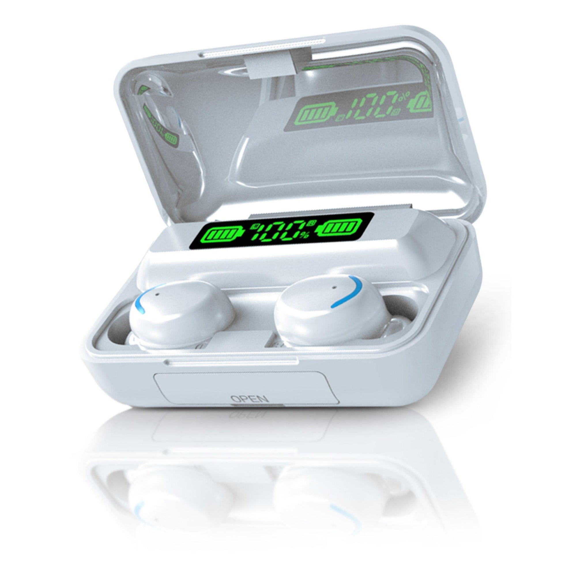 1500mAh Power Bank Charging Case: Provides up to 6 hours of talk time per charge and includes a built-in USB port to charge other devices. The smart LED display shows battery status for both earbuds and the charging case.