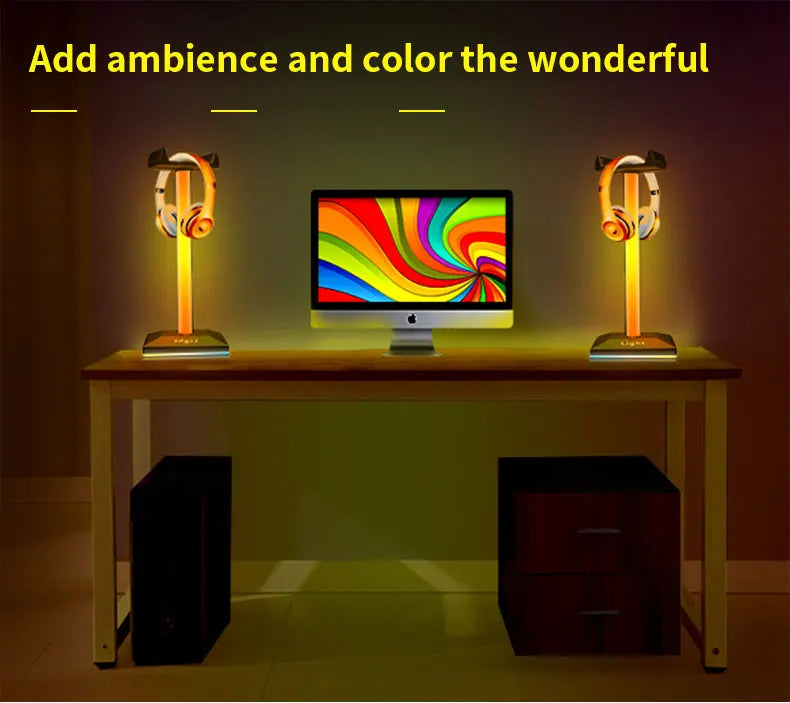 USB LED Lights Gaming Headset Stand RGBIC Lights Gaming Headset Stand Decoration Gaming For Gaming Room Accessories New