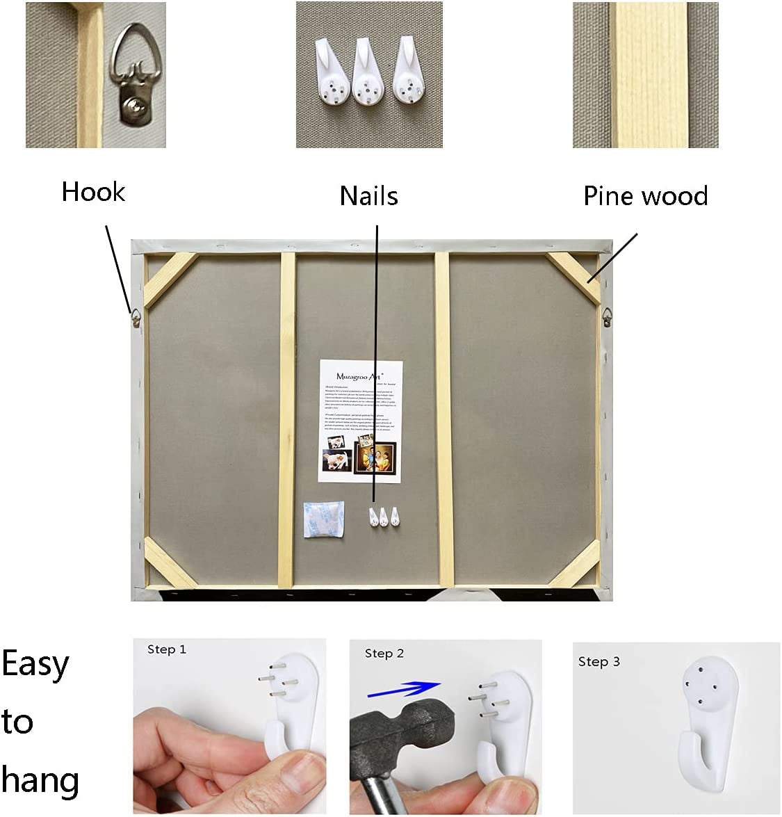 - πΌοΈ Size matters! At 24x32 inches, it comes stretched and ready to hang. With a strong hook fixed to the frame and nails included, decorating your walls has never been easier!