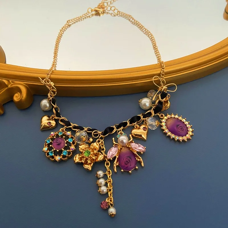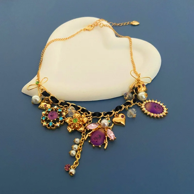 Vintage Art Retro Enamel Fringe Animal Bees Love Flowers Butterfly Trend New Necklace