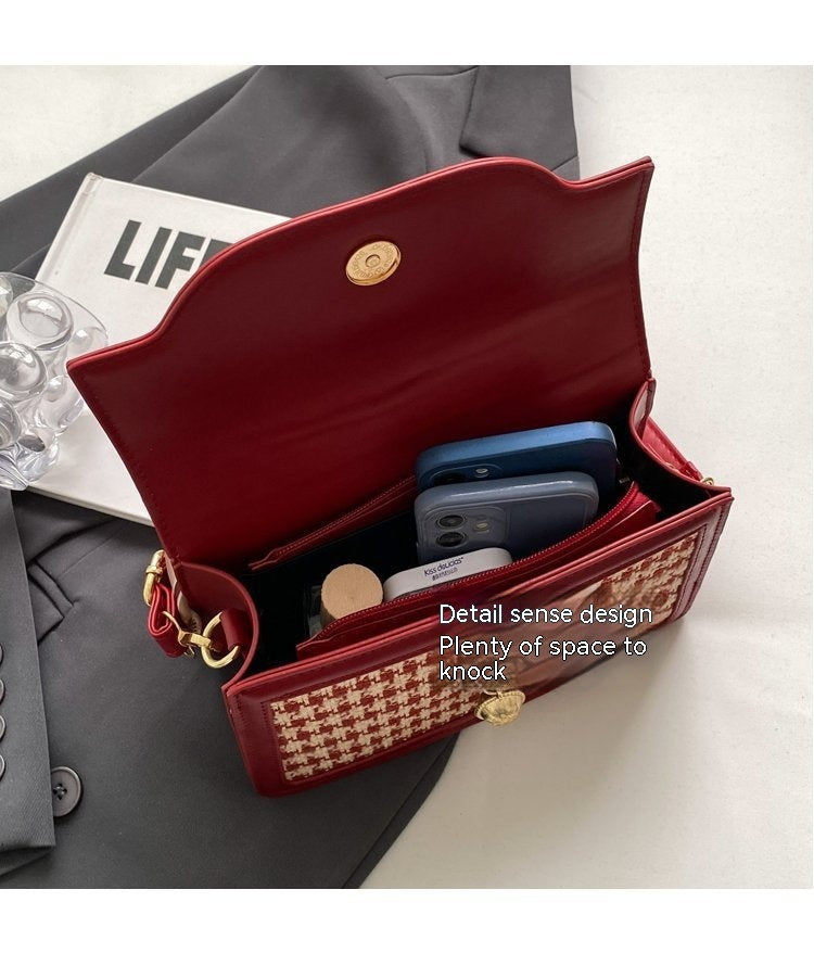 Crafted from high-quality PU material, the bag boasts a unique woolen texture that stands out in a crowd. The vibrant red color is eye-catching and perfect for those who love to make a statement. Designed in a horizontal square shape, it offers ample space for all your essentials without compromising on style. With a medium-hard hardness, this bag maintains its shape while providing enough flexibility for comfortable wear.